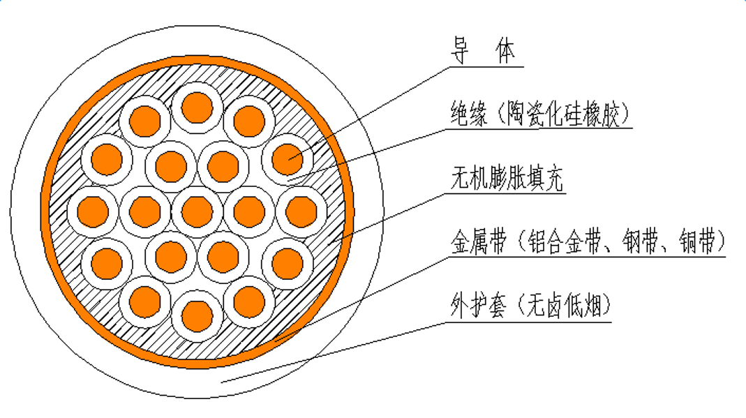 铜芯瓷化硅橡胶矿物绝缘铜带屏蔽钢带铠装无卤低烟护套控制防火电缆 |