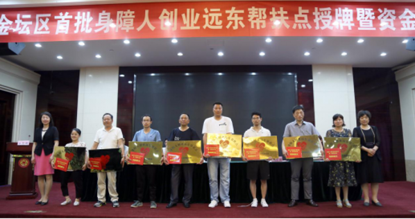 授牌仪式上,王建涛介绍了远东慈善基金会与金坛区合作开展全区首批“身障人创业远东帮扶点”项目的合作推进过程,2015年,远东慈善基金会通过可行性研究并经理事会决议同意,在全国启动“身障人创业远东帮扶点”项目。2017年7月20日,周东佼率队来金坛区调研身障人创业就业情况。2017年10月,金坛区残联在全区发出关于开展“身障人创业远东帮扶点”项目征召的通知。通过各基层残联的宣传发动和广泛征集,最后向远东慈善基金会申报了33个帮扶名额。2018年4月,双方签订合作协议确定携手帮扶金坛区身障人创业项目。